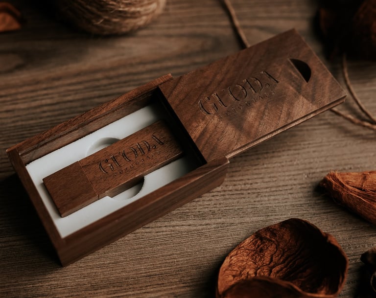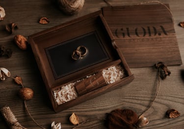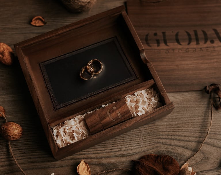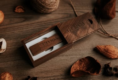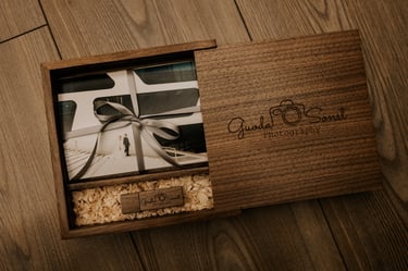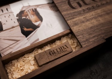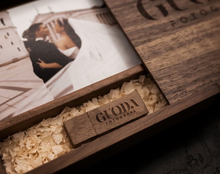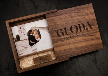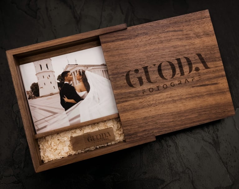 • Medinę dėžutę su USB atmintine ir 40 spausdintų 10x15, Jūsų pasirinktų fotografijų. Dėžutės kaina 40 eur.